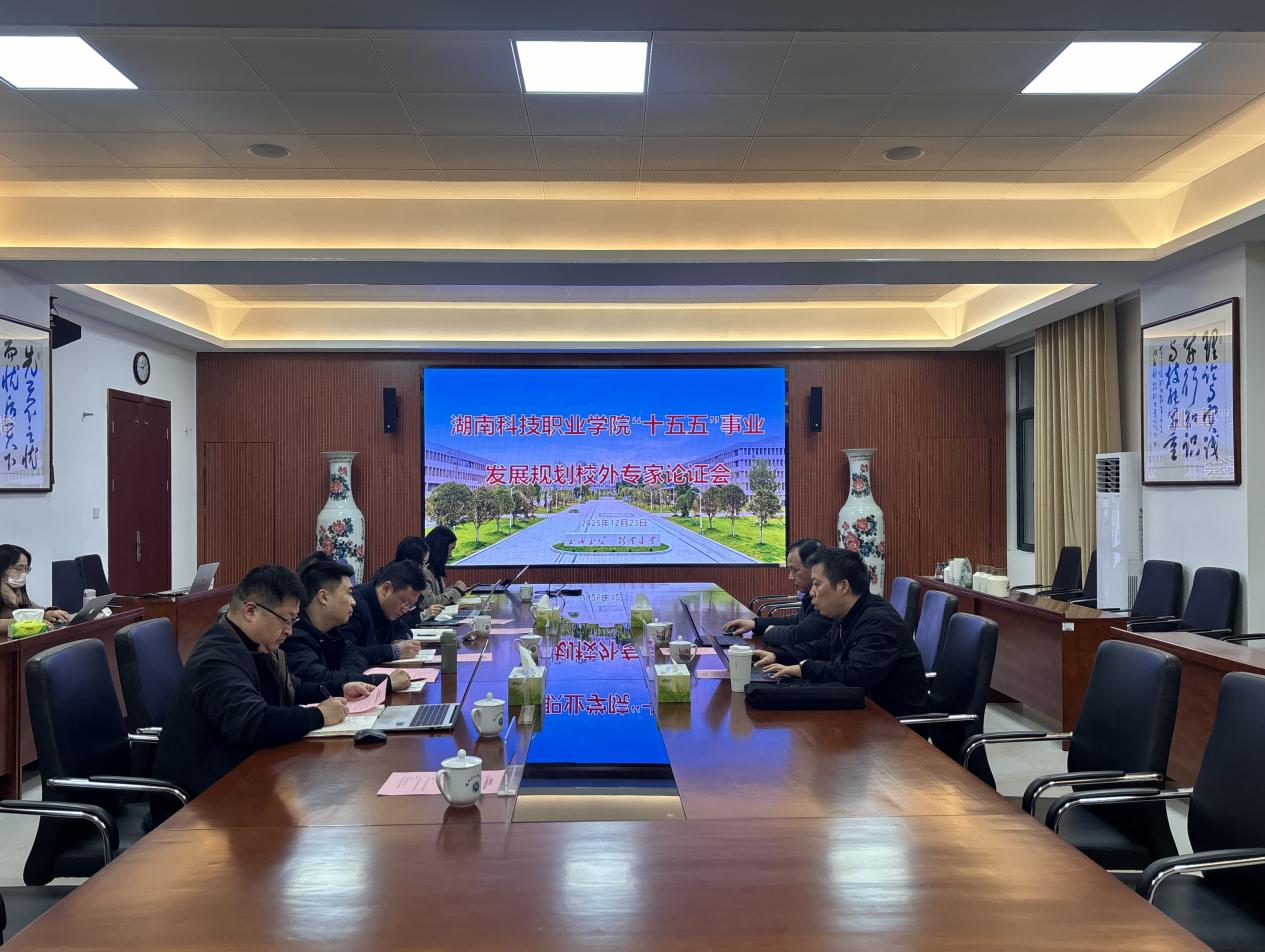 12月23日,学校“十五五”事业发展规划校外专家论证会在天心校区北院行政办公楼308会议室召开。会议邀请了湖南大众传媒职业技术学院发展规划处处长纪富贵、新媒体技术学院原院长吴振峰两位资深专家进行指导。学校党委委员、副校长许彪出席会议,高等职业教育发展研究中心(黄炎培职业教育思想研究院)主任王亮主持会议,党政办公室、组织人事部、党校,教务处、学生工作部、团委等职能部门负责人及规划编制组成员参会。
