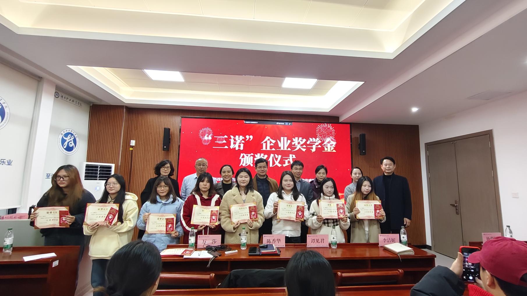 12月24日下午,药学院“三诺”奖学金颁奖仪式在天心校区北院创新创业楼237会议室举行。三诺生物生产中心副总监陈香华、人资主管万莎,学校党委委员、副校长谭见君及药学院、学生工作部、团委,对外合作与国际交流处等相关部门负责人出席,仪式由药学院院长郑兴主持。